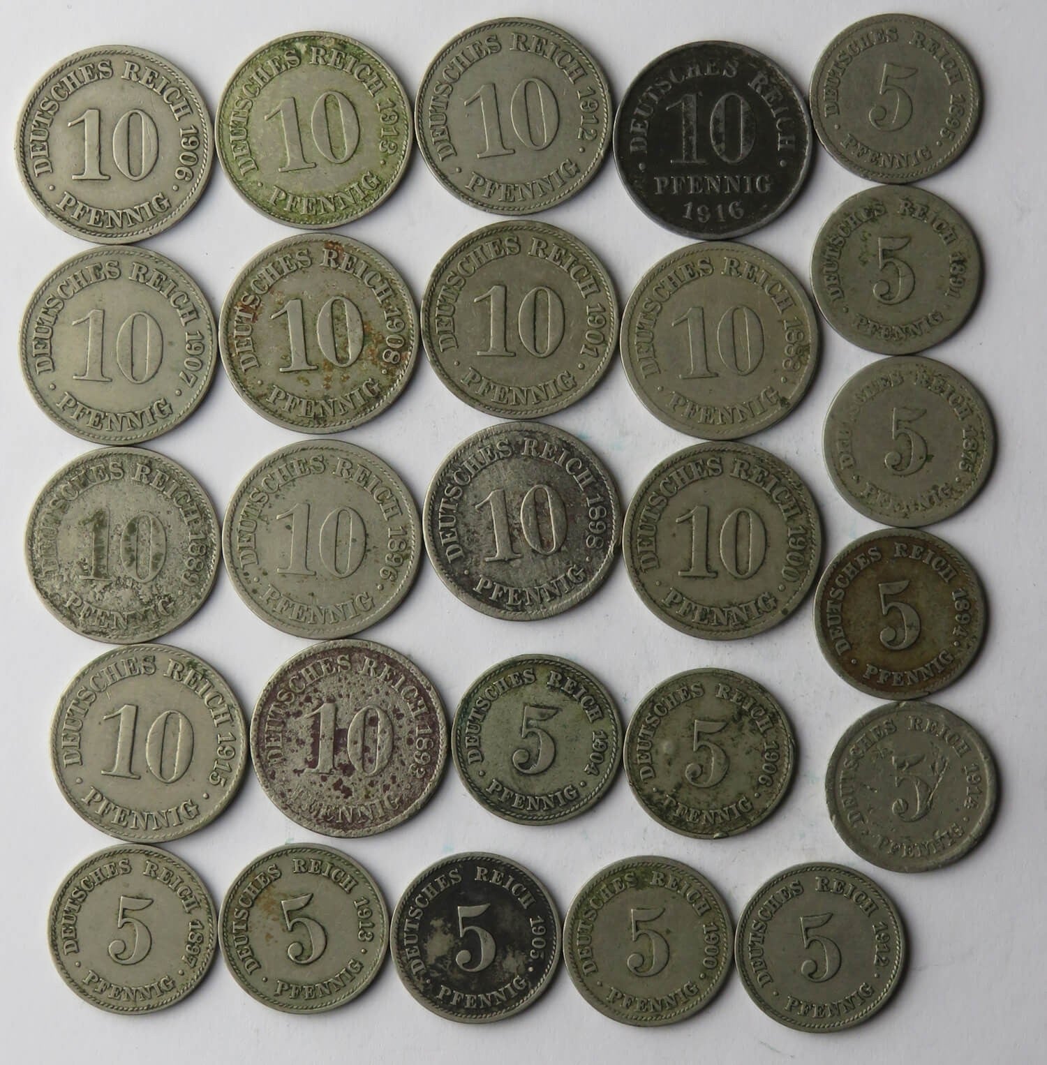 Niemcy Lot 26 szt: 14 x 10 fenigów + 12 x 5 fenigów