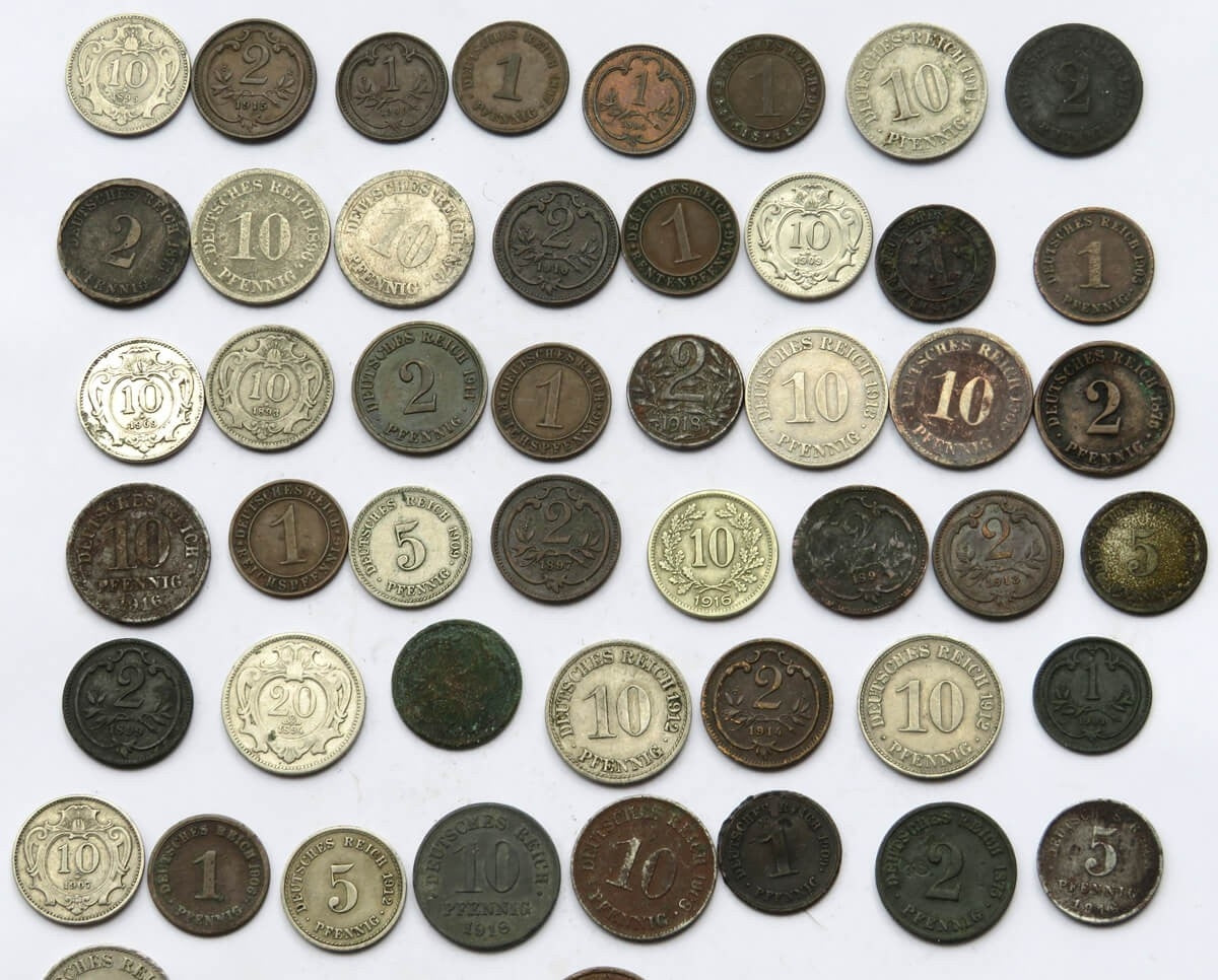 Niemcy, monety z przełomu XIX i XX wieku, zestaw 68 sztuk