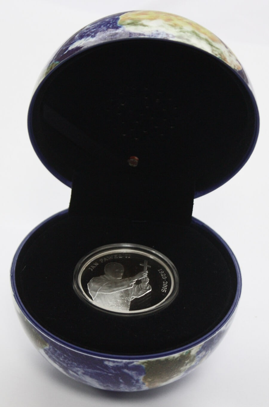 Pozytywka (grająca Barkę) z monetą 2 Dolary Fiji Jan Paweł II